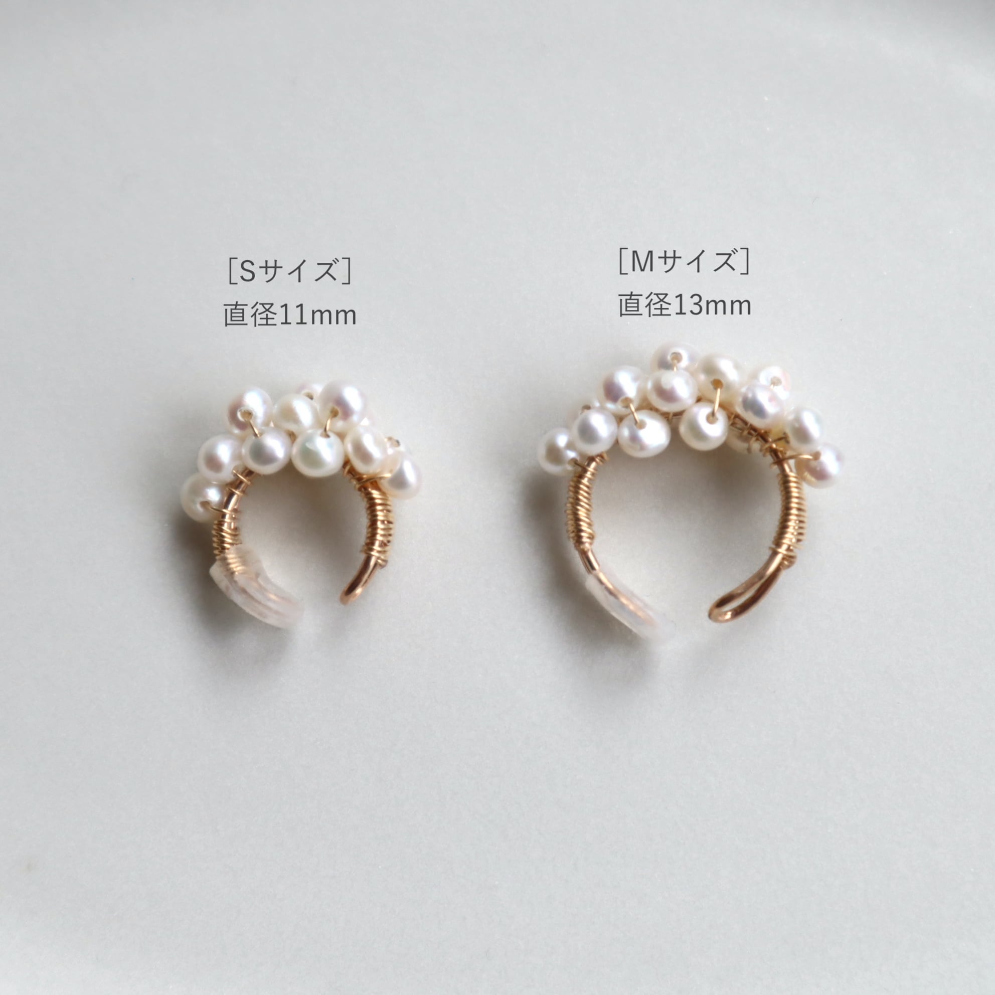 3mmの小さな天然石や淡水パールがぎゅっと集まって、上品な、女性らしい品の良さがあるイヤーカフになっています。